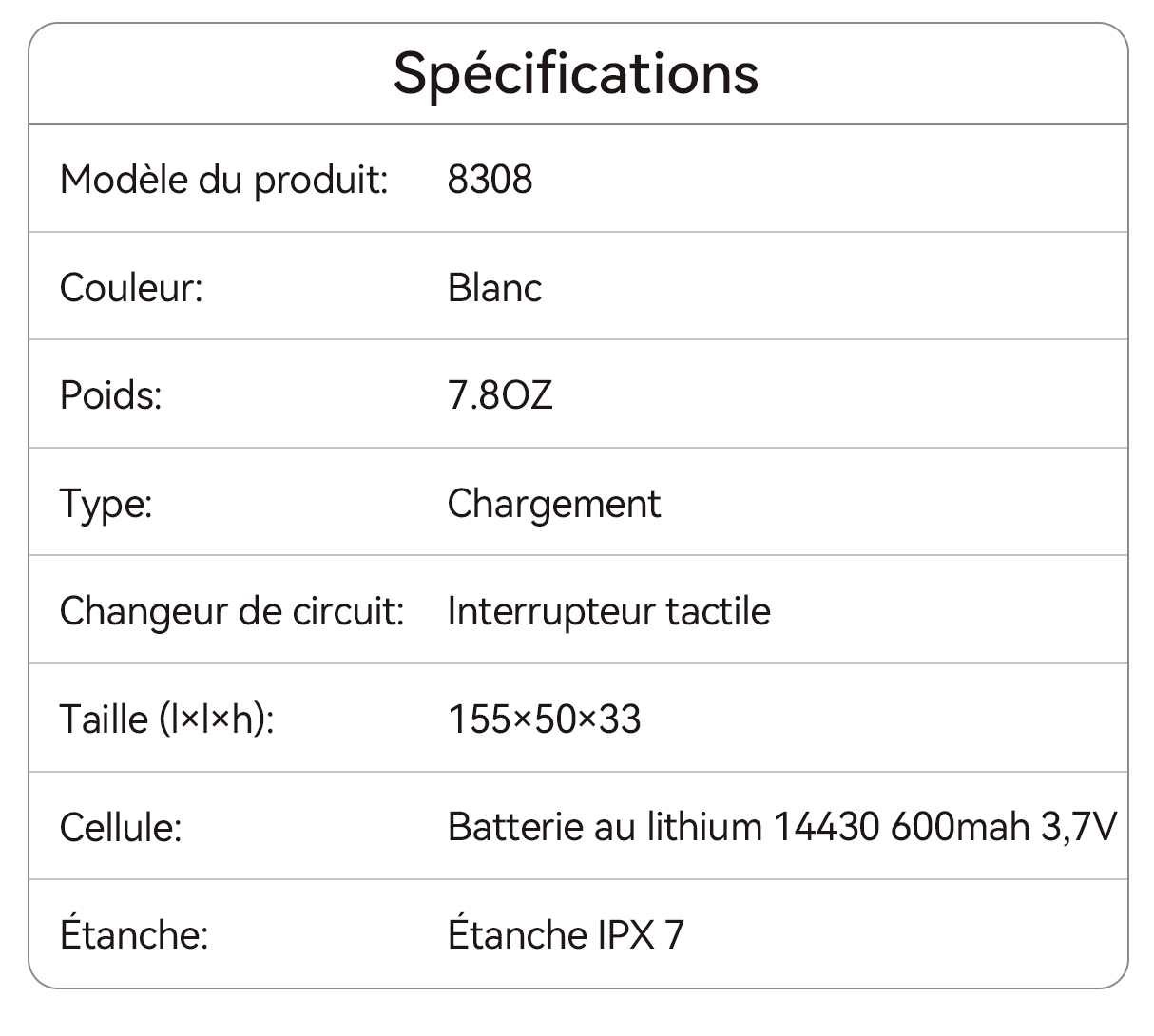 - Étanche Et Facile à Nettoyer : Une cote d'étanchéité IPX7 permet une utilisation sur peau mouillée ou sèche et un rinçage simple.