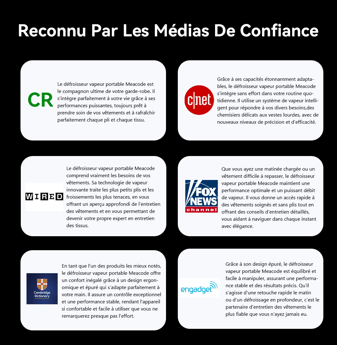 Le défroisseur portable Meacode pour vêtements fut sa réponse. Il offre une élimination des plis impeccable, un confort superbe avec un design léger et ergonomique, et une expérience lisse sans effort. Conçu pour la confiance en soi—parce que paraître à son meilleur ne devrait jamais être compromis.