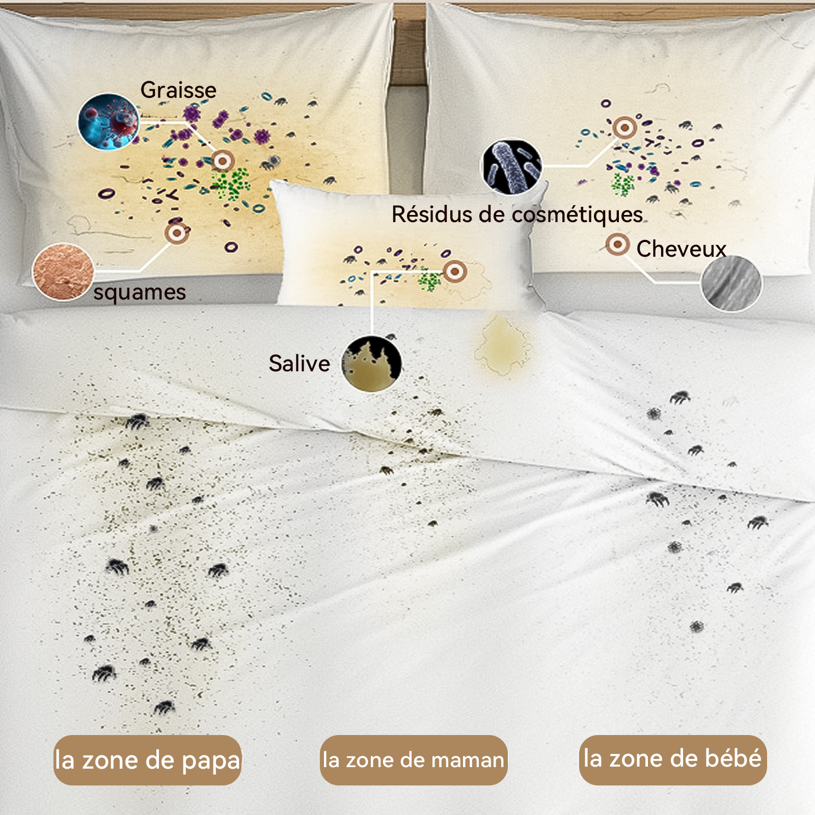 Ce que vous percevez comme propre n'est que la surface. Pendant votre sommeil, une crise invisible se déroule en profondeur dans votre literie : des millions d'acariens, de bactéries et d'allergènes se nourrissent de vos cellules mortes. Ce sont les coupables silencieux derrière vos irritations cutanées, vos allergies et vos nuits agitées. Pouvez-vous vraiment vous permettre d'ignorer cette menace ?