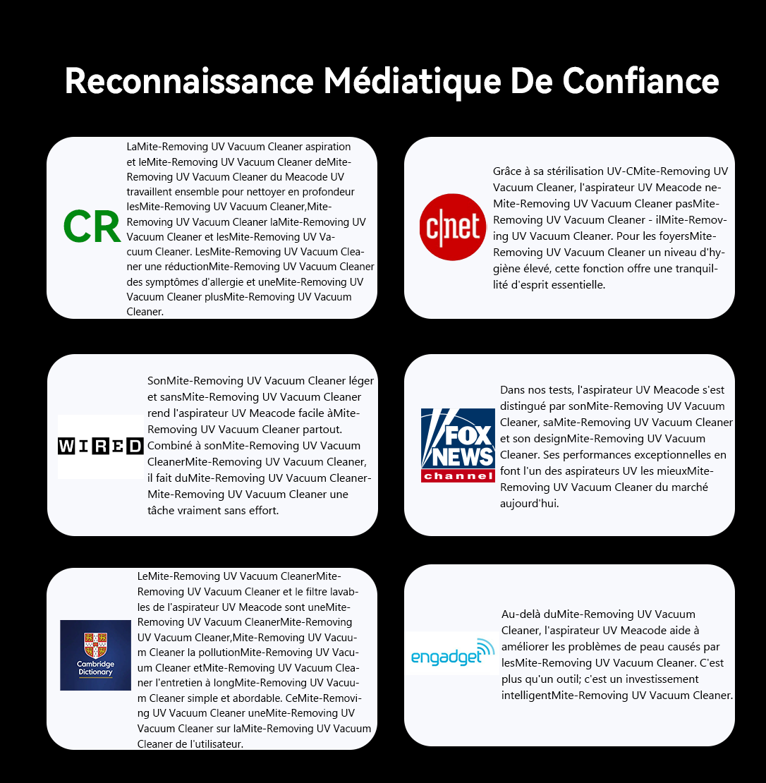 Les acariens sont une cause majeure de démangeaisons et d'allergies cutanées. Ces parasites microscopiques se cachent dans votre literie, où leurs déchets déclenchent des démangeaisons, des rougeurs et des éruptions cutanées constantes. Le tapotement à haute fréquence de Meacode fait vibrer les fibres en profondeur pour déloger les acariens, puis l'aspiration puissante les élimine complètement. Cela supprime la source de votre irritation cutanée, vous offrant un soulagement et une nuit de sommeil calme et sans démangeaisons.